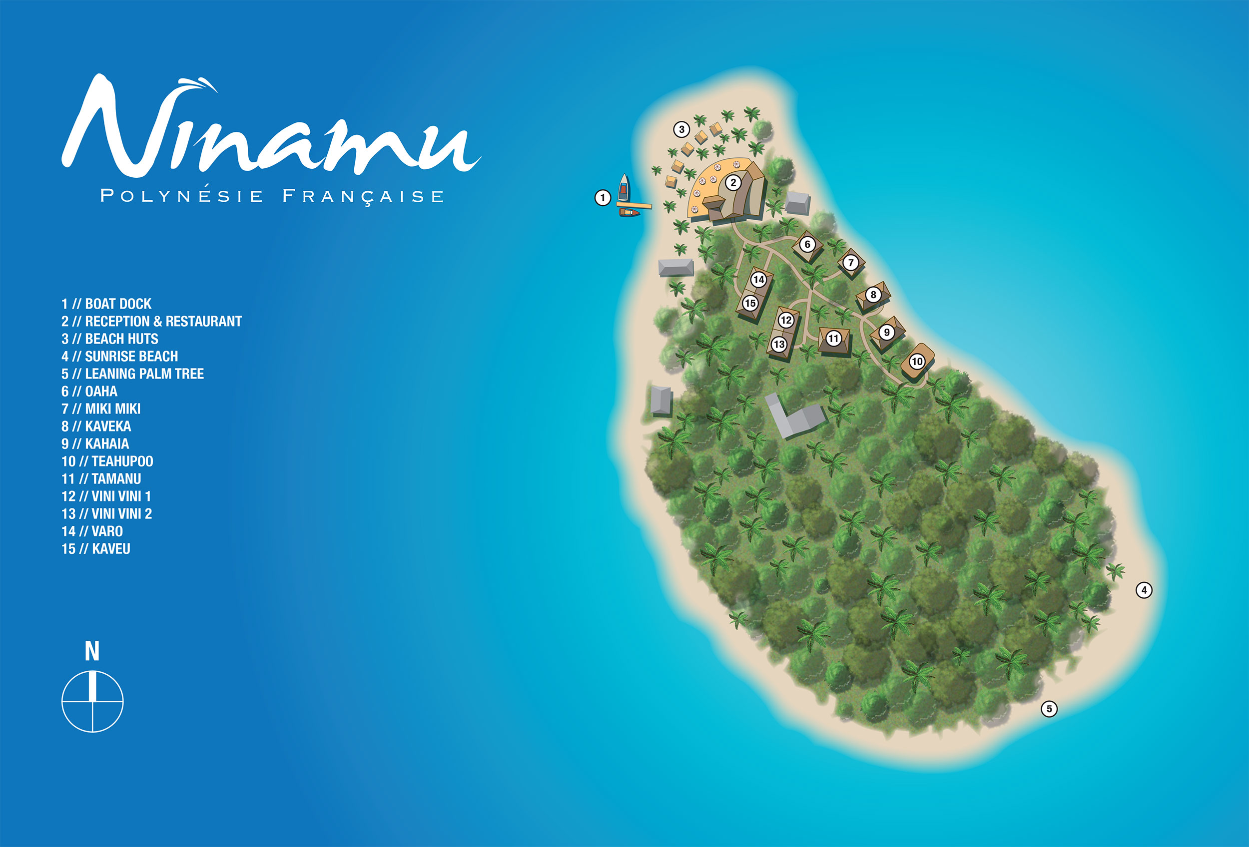 Hidden away on a private island in the southwest corner of the atoll, Ninamu (Nee-Nah-Moo) Resort is a luxury minded outdoor enthusiasts’ retreat. We cater to surfers, divers, fishermen, kite surfers, paddle boarders or anyone who loves cruising in tropical waters that are bursting with life and energy. Everyone should experience a pristine atoll in the middle of the South Pacific once in their life.