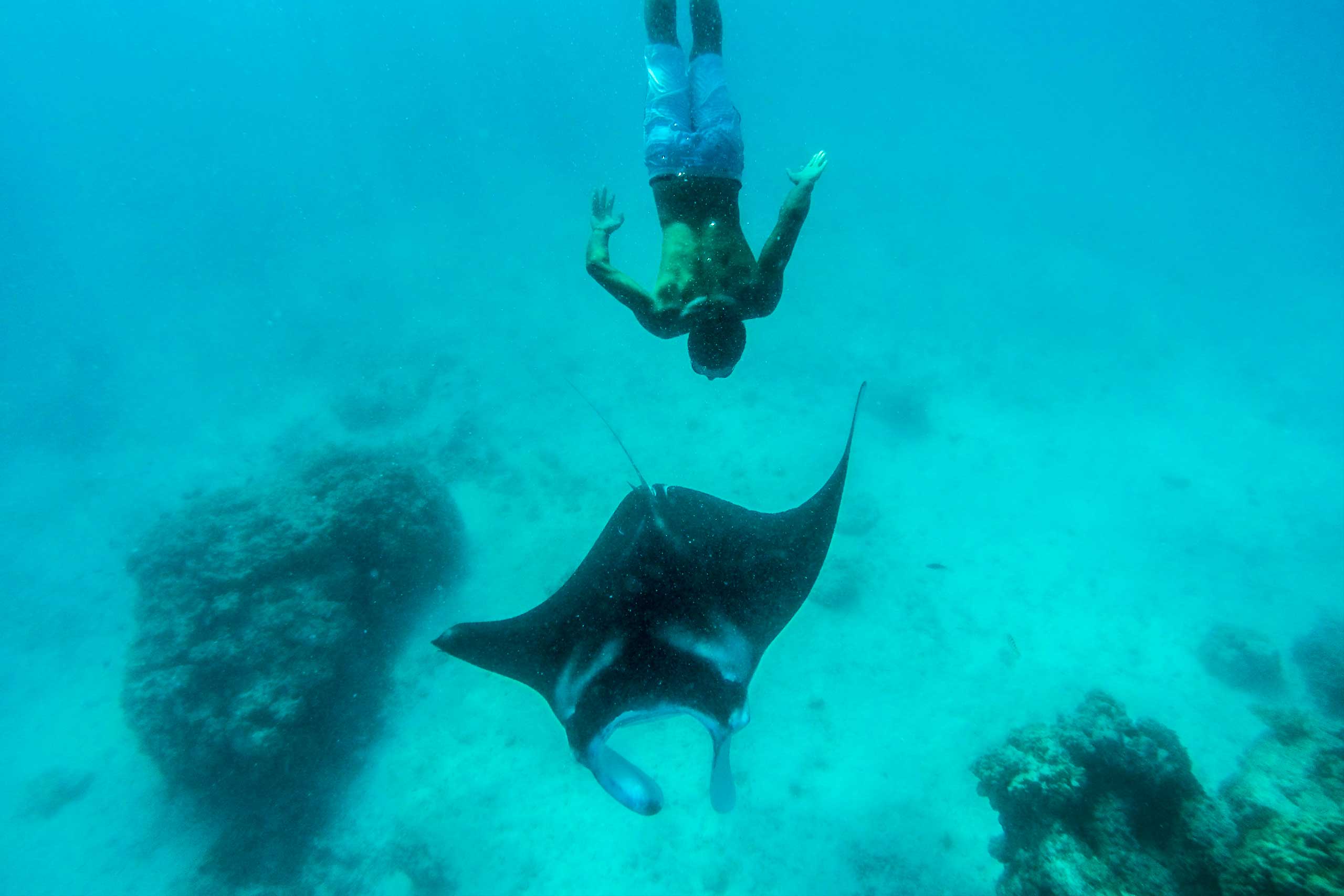 For seasoned veterans and first-timers alike, Ninamu Resort offers unparalleled snorkeling experiences. Your first peek underwater at Ninamu is unforgettable: exceptional water clarity and an extraordinary abundance of life. Huge schools of colorful fish and intricately sculpted coral heads wait just off our beach, while manta rays, sea turtles, and even dolphins are only a short boat ride away.